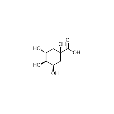 D-(-)-Quinic acid (Standard) is the analytical standard of D-(-)-Quinic acid. This product is intended for research and analytical applications. D-(-)-Quinic acid scavenges hydrogen peroxide (IC50=87.11 μg/mL) and exhibits antioxidant activity. D-(-)-Quinic acid is the inhibitor for MAO and α-Glucosidase (IC50 =93.75 μg/mL). D-(-)-Quinic acid is orally active[1][2].
