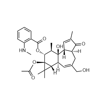 Sapintoxin A is a phorbol ester that can be isolated from the unripe fruits of Sapium indicum[1].