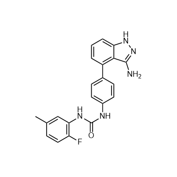 IC50 & Target:IC50: 4 nM (KDR), 4 nM (FLT1), 66 nM (PDGFRβ), 3 nM (CSF-1R), 4 nM (FLT3), 14 nM (Kit)[1]