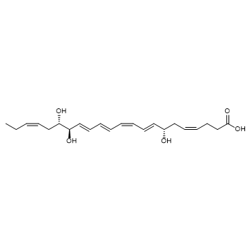 Resolvin D2 is a metabolite of docosahexaenoic acid (DHA), with anti-inflammatory, anti-infective activities. Resolvin D2 is a potent regulator of leukocytes and controls microbial sepsis. Resolvin D2 is a remarkably potent inhibitor of TRPV1 (IC50 = 0.1 nM) and TRPA1 (IC50 = 2 nM) in primary sensory neurons[1][2][3].