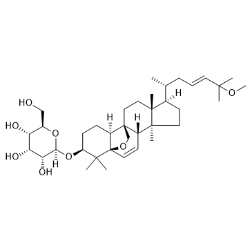 Momordicoside G (Momordicacoside G) is an orally active cucurbitane-type triterpene glycoside. Momordicoside G selectively induces apoptosis of M1-like macrophages, without affecting M2-like macrophages. Momordicoside G reduces intracellular ROS levels and promotes autophagy. Momordicoside G also has anticancer activity, inhibiting the growth of cancer cell lines. Momordicoside G stimulates M2-associated lung injury repair and prevents inflammatory lung cancer injury[1].