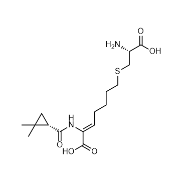 Cilastatin (MK0791) is a reversible, competitive renal dehydropeptidase I inhibitor with an IC50 of 0.1 μM. Cilastatin inhibits the bacterial metallob-lactamase enzyme CphA with an IC50 of 178 μM. Cilastatin is an antibacterial adjunct[1][2][3]. IC50 & Target:IC50: 0.1 μM (Renal dehydropeptidase I); 178 μM (Bacterial metallob-lactamase enzyme CphA)[1] In Vitro:Cilastatin (200 μg/mL; 24 hours; RPTECs) treatment protects against Vancomycin-induced proximal tubule apoptosis and increases cell viability, without compromising the antimicrobial effect of Vancomycin[2]. In Vivo:In a mouse model (female mice, strain CD-1, 20 g) of systemic infection, Imipenem plus Cilastatin can protect mice from S. aureus, E. coli, and P. aeruginosa infection[3].
