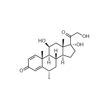 Methylprednisolone (U 7532) is a synthetic corticosteroid with anti-inflammatory and immunomodulating properties. Methylprednisolone improve severe or critical COVID-19 by activating ACE2 and reducing IL-6 levels[3]. IC50 & Target:Glucocorticoid Receptor In Vitro:Methylprednisolone is commonly used for anti-inflammatory purposes. Methylprednisolone can be used in the study of bronchial inflammation or acute bronchitis caused by arthritis and various respiratory diseases[1]. Methylprednisolone can improve neurological recovery in acute spinal cord injury[2]. In Vivo: