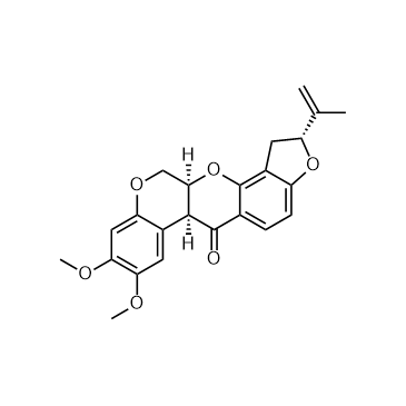 Rotenone is a mitochondrial electron transport chain complex I inhibitor. Rotenone induces apoptosis through enhancing mitochondrial reactive oxygen species production. In Vitro:Mitogen Activated Protein Kinase (MAPK), Toll-like receptor, Wnt, and Ras signaling pathways are intensively involved in the effect of rotenone on the ENS[2]. In Vivo:Rotenone can be used to create Parkinson's disease models.