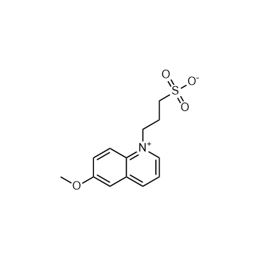 SPQ is a fluorescent dye. SPQ can be used to measure chloride ion concentration transients and transport rates in vesicles, cells, and even intact epithelium[1][2]. In Vitro:SPQ (1 mM or 10 mM, 16 h in 4℃ or 30 min 37℃) can accurately and real-time report changes in intracellular Cl- concentration in human erythrocyte ghosts[2].