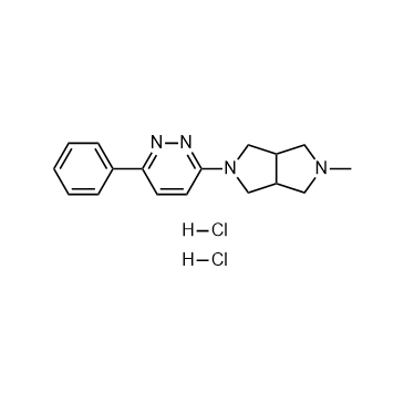 A-582941 dihydrochloride is a potent, selective and brain-penetrant partial agonist of α7 nAChR, with Kis of 10.8 and 16.7 nM in rat brain membranes and human frontal cortex, respectively. A-582941 dihydrochloride also binds to human 5-HT3 receptor with a Ki of 150 nM. A-582941 has the potential for cognitive deficits associated with various neurodegenerative and psychiatric disorders research[1][2].
