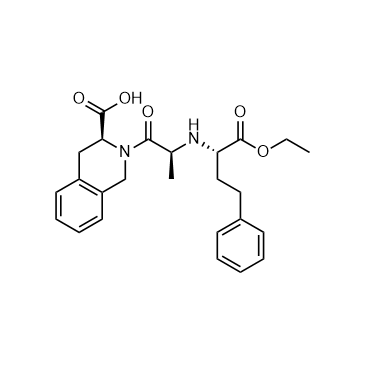 Quinapril is a potent, orally active, non-peptide and nonsulfhydryl inhibitor of angiotensin-converting enzyme (ACE). Quinapril specifically interrupts the conversion of angiotensin I to angiotensin II in both plasma and tissue. Quinapril is enzymatically hydrolyzed to a pharmacologically active diacid form quinaprilat. Quinapril is efficacious in hypertensive models[1].
