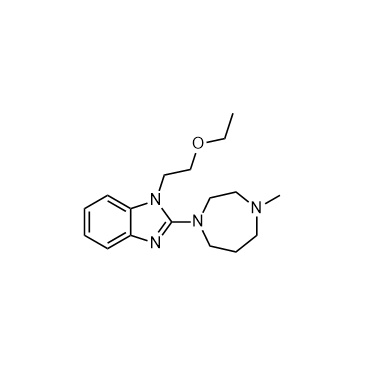 Emedastine is an orally active, selective and high affinity histamine H1 receptor antagonist with a Ki value of 1.3 nM. Emedastine is a benzimidazole derivative with potent antiallergic properties and used for allergic rhinitis, allergic skin diseases and allergic conjunctivitis[1][2][3].