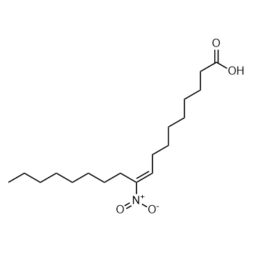 10-Nitrooleic acid (CXA-10), a nitro fatty acid, has potential effects in disease states in which oxidative stress, inflammation, fibrosis, and/or direct tissue toxicity play significant roles[1].