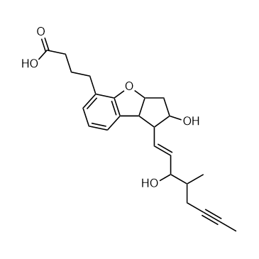 (Rac)-Beraprost ((Rac)-ML 1229) is an orally active prostacyclin analog that inhibits the release of Ca2+ from intracellular storage sites by binding to prostacyclin membrane receptors (Prostaglandin Receptor), leading to relaxation of smooth muscle cells and vasodilation. Beraprost has vasodilatory, antiplatelet, and cytoprotective effects, making it promising for research in the field of cardiovascular diseases, such as thromboangiitis obliterans and atherosclerosis[1].