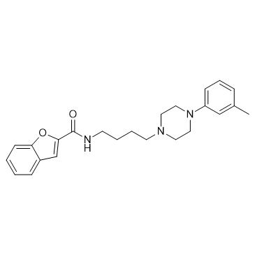 D3/5-HT receptor modulator-1 (compound 5i) is a selective dopamine D3 receptor and 5-HT2A receptor antagonist and a partial 5-HT1A receptor agonist. D3/5-HT receptor modulator-1 shows Ki values of 4.5 nM, 11.9 nM, and 15.3 nM for dopamine D3, 5-HT2A, and 5-HT2A receptors. D3/5-HT receptor modulator-1 has a low affinity for dopamine D2 receptors, 5-HT2C receptors, and hERG channels. D3/5-HT receptor modulator-1 has an atypical antipsychotic profile[1].