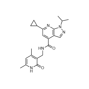 EZH2-IN-21 is a potent inhibitor of the histone lysine methyltransferase enhancer of zeste homologue 2 (EZH2) with anticancer activity. EZH2-IN-21 is competitive with the cofactor SAM and noncompetitive with peptide or nucleosome substrates[1].