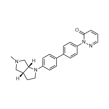 ABT-288 is a competitive, potent and selective histamine H3 receptor (H3R) antagonist. ABT-288 has Ki values of 1.9 and 8.2 nM for human and rat H3Rs, respectively. ABT-288 can be used in cognitive impairment research.[1].