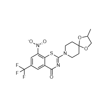 BTZ043 Racemate (BTZ10526038) is the racemate of BTZ043. BTZ043 is an inhibitor of decaprenyl-phosphoribose-epimerase (DprE1), and the antimicrobial activity of BTZ043 is more potent than BTZ043 Racemate[1]. IC50 & Target: DprE1[1].