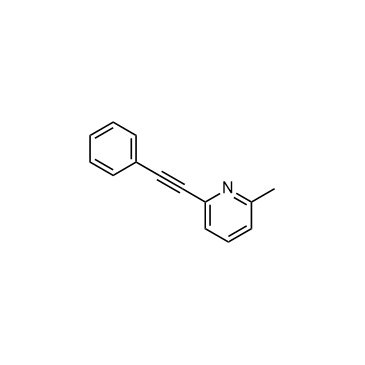 MPEP is a potent, selective, noncompetitive, orally active and systemically active mGlu5 receptor antagonist, with an IC50 of 36 nM for completely inhibiting quisqualate-stimulated phosphoinositide (PI) hydrolysis. MPEP has anxiolytic-or antidepressant-like effects[1][2]. MPEP is a click chemistry reagent, itcontains an Alkyne group and can undergo copper-catalyzed azide-alkyne cycloaddition (CuAAc) with molecules containing Azide groups.