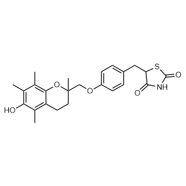 Troglitazone is an orally active PPARγ agonist, with EC50s of 550 nM and 780 nM for human and murine PPARγ receptor, respectively. Troglitazone has anticancer activity, prevents and inhibits the development of type 2 diabetes.