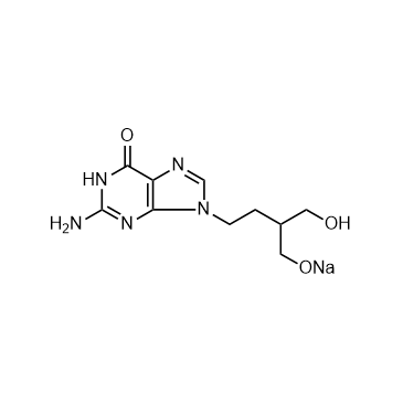 Penciclovir (VSA 671) sodium is a potent and selective anti-herpesvirus agent with EC50 values of 0.5, 0.8 µg/ml for HSV-1 (HFEM), HSV-2 (MS), respectively. Penciclovir sodium shows anti-herpesvirus activity with no-toxic. Penciclovir sodium preventes mortality in mouse[1][2].