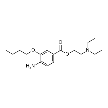 Oxybuprocaine is a short-acting ester anesthetic. Oxybuprocaine binds to sodium channels and reversibly stabilizes neuronal membranes. Oxybuprocaine has cutaneous analgesic properties. Oxybuprocaine is less potent than Bupivacaine (HY-B0405) at producing central nervous system and cardiovascular toxicity. Oxybuprocaine can be used in ophthalmology and otolaryngology[1][2][3][4][5][6].